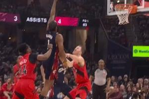 比赛首节7分39秒,骑士当家球星哈登两罚两中,季后赛生涯得分来到3897分,追平拉里·伯德。