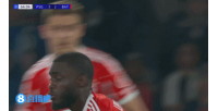 基米希任意球开入禁区,于帕头球一蹭入网!拜仁扳回一城3-5巴黎
